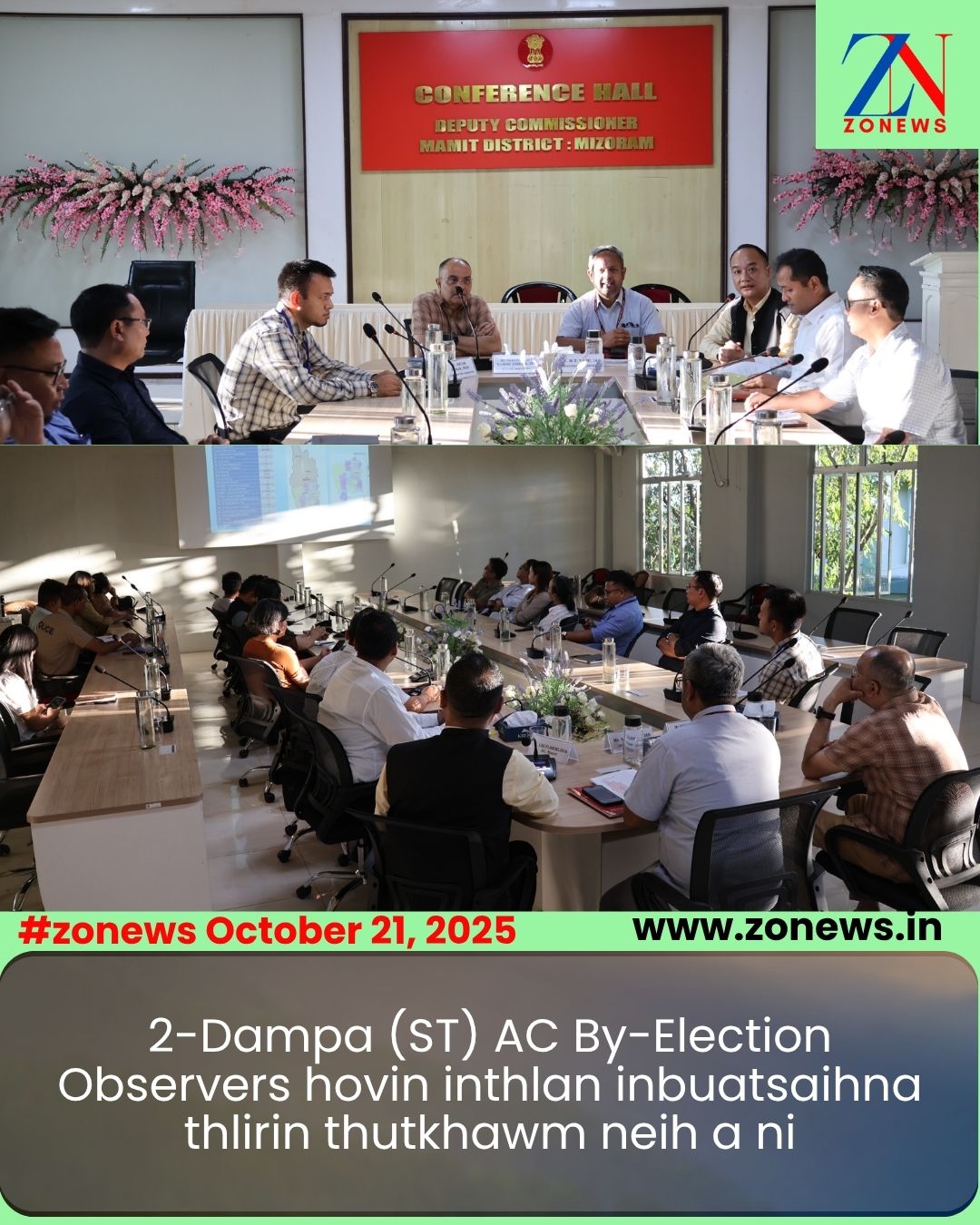#ZONEWS Mamit, October 21, 2025 : Vawiin khan 2-Dampa (ST) AC By-Election neih tura viltute Mr.M.T Reju, IAS General Observer,Mr.Sabya Sachi Raman Mishra, IPS,Police Observer leh Mr.Shyam Kumar, IDAS, Expenditure Observer hovin inthlanna atana inbuatsaihna hrang hrang thlirhoin thutkhawm a ni.