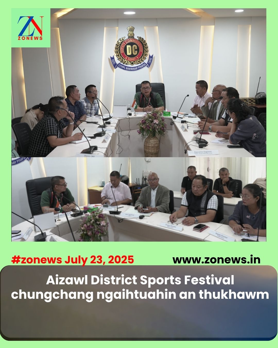 #ZONEWS July 23, 2025: Aizawl District Sports Committee (ADSC) chu an Chairman Er. Lalhriatpuia, DC ni bawk hovin vawiin khan DC Conference Hall-ah an thukhawm a, Aizawl District Sports Festival huaihawt chungchang an sawiho a ni.