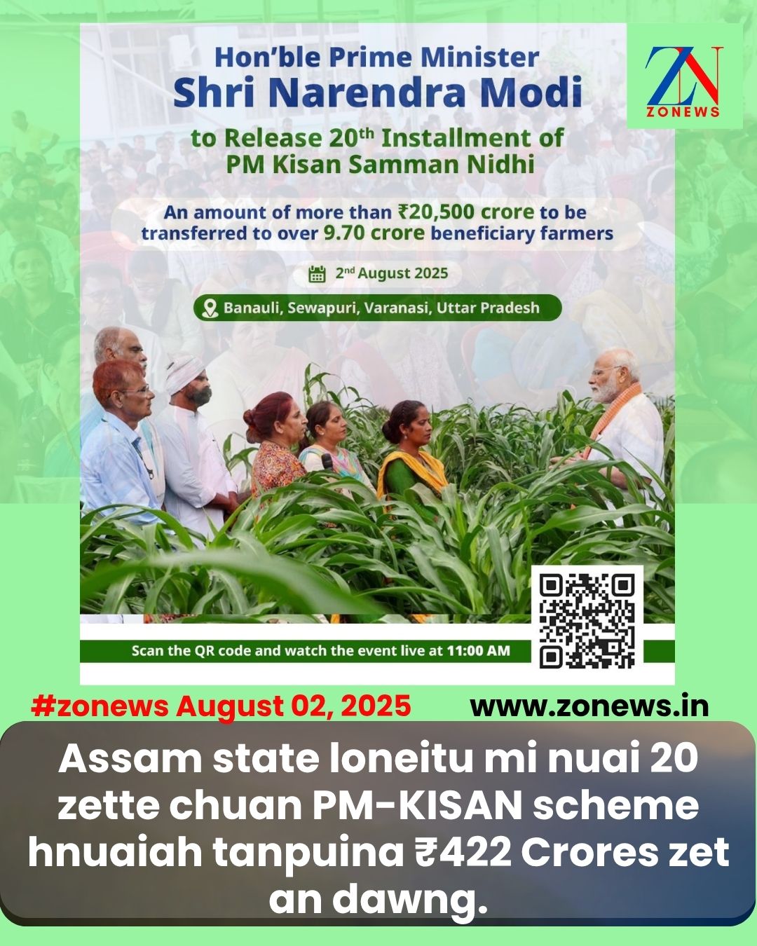 Assam state loneitu mi nuai 20 zette chuan PM-KISAN scheme hnuaiah tanpuina ₹422 Crores zet an dawng.