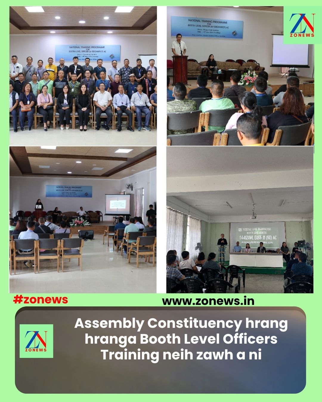 #ZONEWS July 17, 2025: Election Commission of India in “National Training Programme for Booth Level Officers” July 2 – 17, 2025 chhunga India ram puma buatsaih tura hriattirna a chhuah angin Mizoramah pawh ni 10.07.2025 atang khan Booth Level Officer 1301 te tan training buatsaih a ni a, vawiin ni 17.07.2025 hian training batch hnuhnung ber chu zawh a ni.