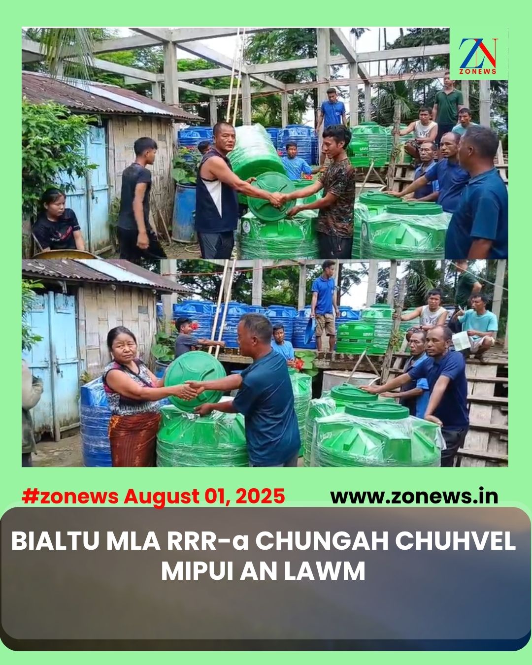 #ZONEWS August 01, 2025: Tukin zing karah Chuhvel khua a Chhungkaw 50 hnenah Hachhek Bialtu, Pu Robert Romawia Royte MLA fund aṭangin Syntex sem a ni a, Syntex semna hun hi Hachhek East Block Hruaitute’n an hman pui a ni.