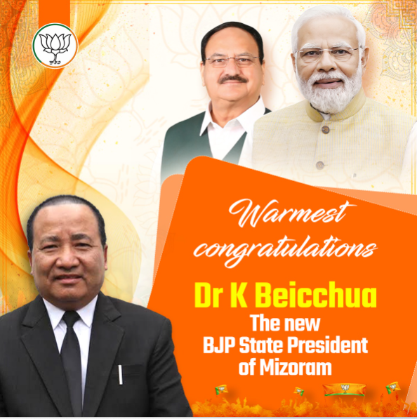 Dr K. Beichhua chuan President a nih angin kal dan tur mumal tak a nei a ti a, India hmasawn ruala Mizoram tihhmasawn chu a tum ber a ni tih sawiin Mizoten inpumkhatna tha tak an neih theih nan hmalak chu an tum hmasak a ni a ti a. BJP in hma an sawn zel theih nan a grass root level atanga siamthat chu a ngai pawimawh dawn tih sawiin thingtlang lamah unit level tam thei ang ber din a, BJP chu kristian dodaltu party ni lovin, hmasawn tir tu party an nihna chu mipui hrilhfiah a, kum 2028 a MLA inthlanah ah a tam thei ang ber MLA neih a, Sorkar siam chu an tum a nih thu a sawi bawk