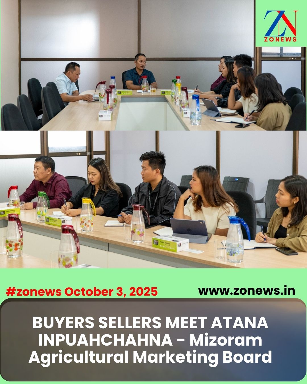 #ZONEWS Aizawl October 3, 2025 : Mizoram Flagship Programme hnuaia kuthnathakatute’n eizawnna hlawk zawk an neih theih nan a ‘thlaithar market’ tihchangtlun kawnga hmalakna pakhat atan kumin kum tawp hian Buyers Sellers Meet buatsaih tum a ni a. Hemi atan hian vawiin khan Mizoram Agricultural Marketing Board (MAMB) member thenkhat leh mi sawmte chu MAMB office, MINECO ah an thukhawm.