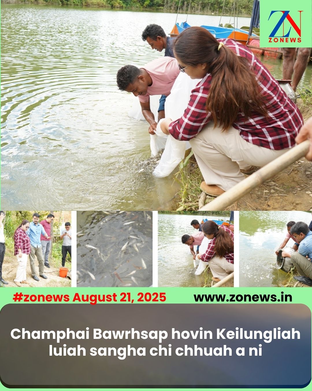 #ZONEWS Champhai August 21, 2025: Vawiin chawhnu khan Fisheries Department hmalaknain Keilungliah Management Committee chuan sangha chi 30,000 bawr vel Keilungliah luiah an chairman leh Champhai Bawrhsap ni bawk, Pu Mohammad Aaquib hovin an chhuah.