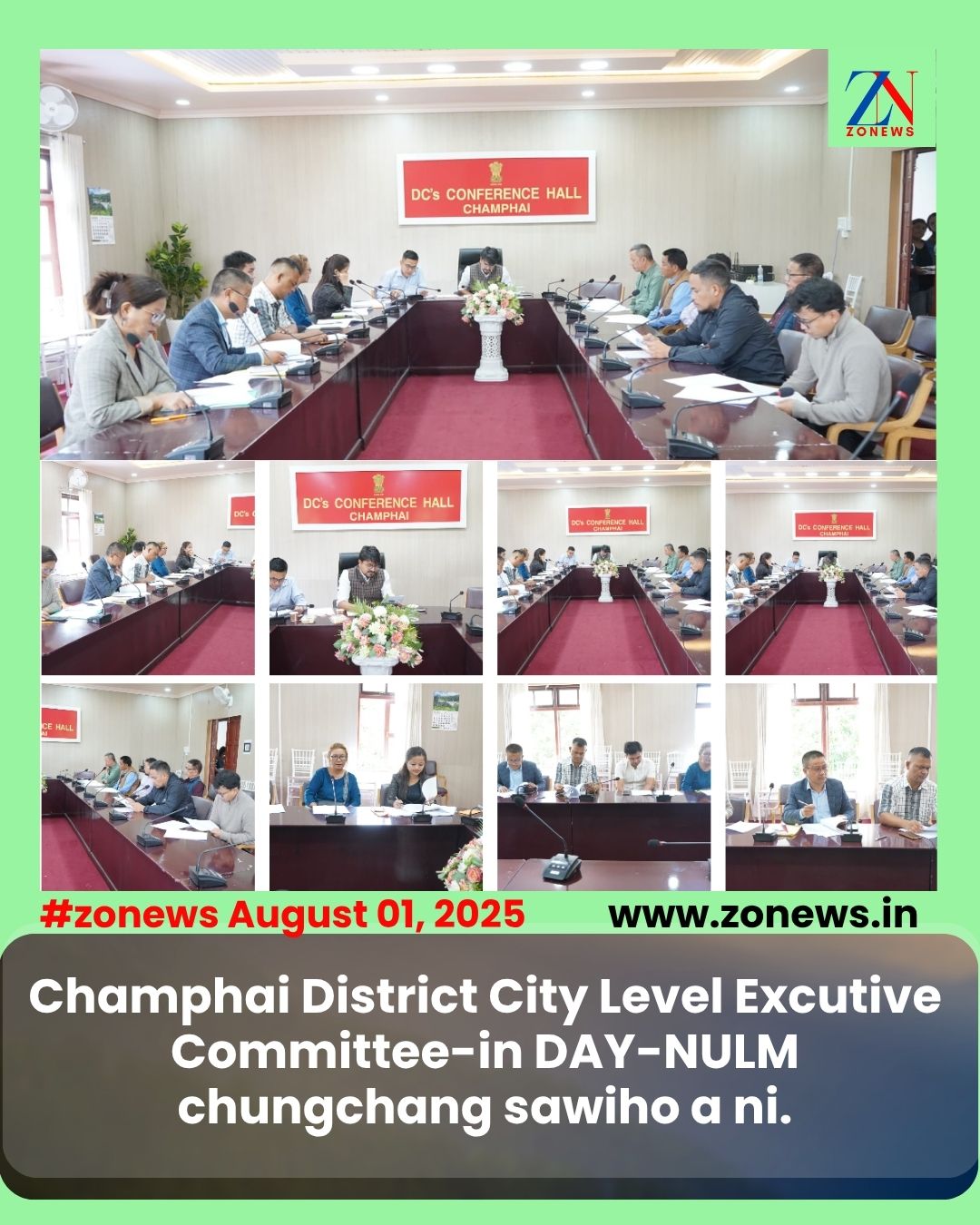 #ZONEWS Champhai, dated 1st August 2025: Vawiin khan DC Conference Hall, Keifangtlangah Deendayal Antyodaya Yojana – National Urban Livelihood Mission (DAY-NULM) hnuaia Patient Attendants’ Shelter sak tur chungchang sawiho turin District City Level Executive Committee an thukhawm a, Champhai Bawrhsap Pu Mohammad Aaquib chuan a kaihruai.