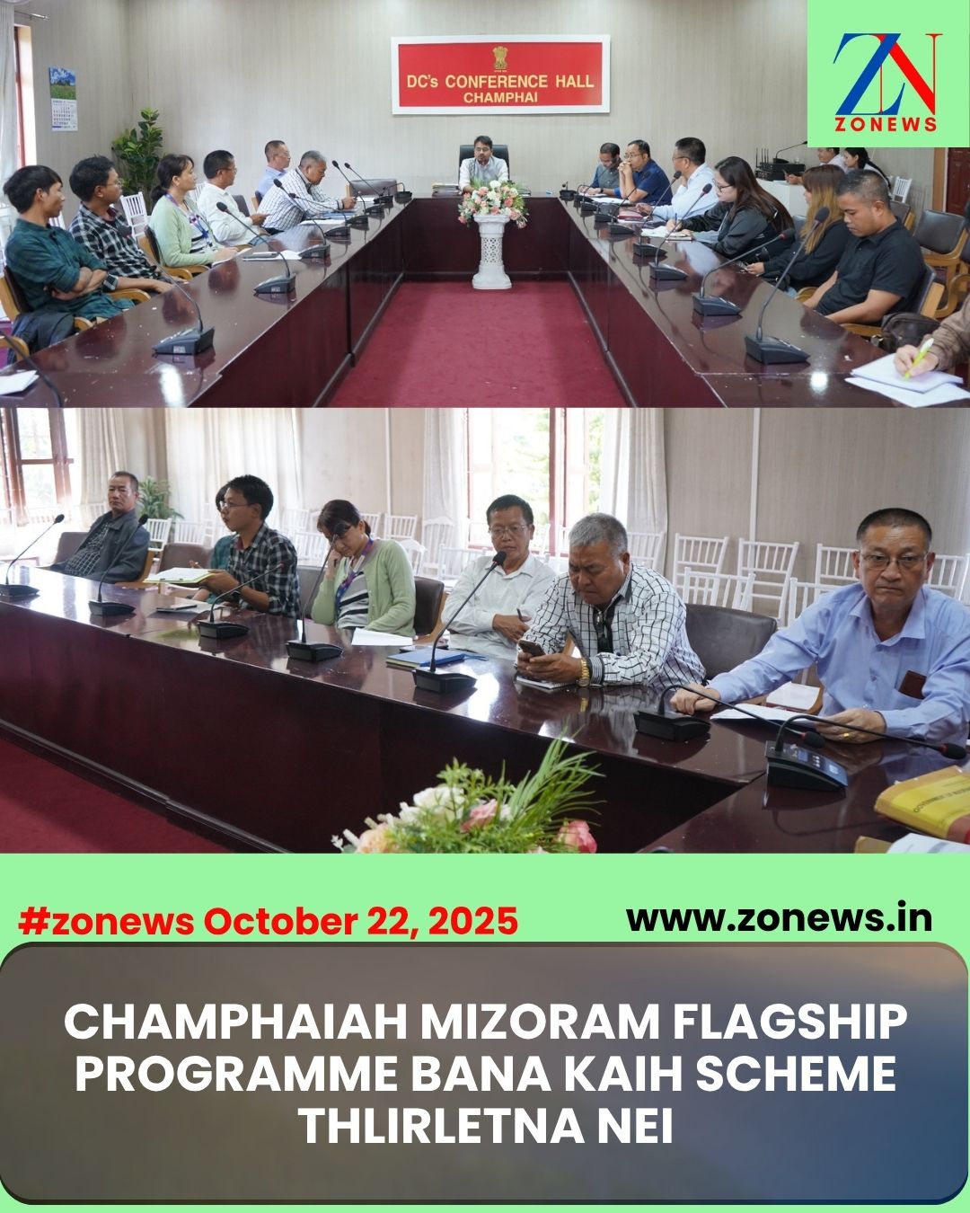 #ZONEWS Champhai October 22, 2025: Champhaiah Mizoram Flagship Programme Bana Kaih (Handholding) Scheme hnuaia hmalakna hrang hrang thlirletna Champhai Bawrhsap Pu Mohammad Aaquib hovin DC Conference Hall Keifangtlangah neih a ni.