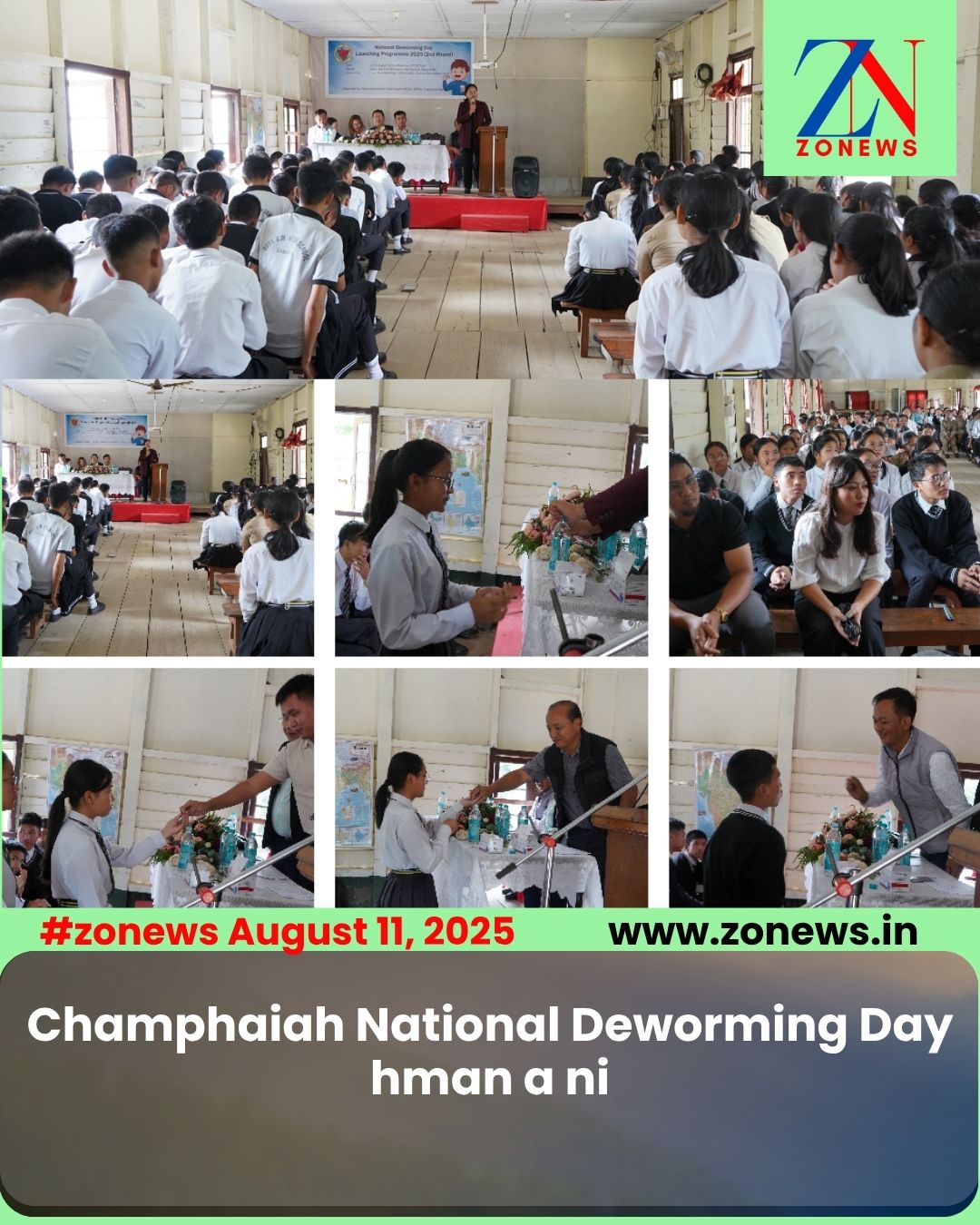 #ZONEWS Champhai August 11, 2025: Vawiin khan Govt. GM High School-ah 2025 chhunga a vawi hnih nan rulhut laka invenhim dan inzirtirna leh naupangte rulhut damdawi pek ni, National Deworming Day hman a ni a, Champhai Chief Medical Officer (CMO) Dr. R. Lalnienga’n chairman niin hun a kaihruai a, District Education Officer (DEO) Pi K. Lalsiamliani’n khuhhawnna hun a hmang.