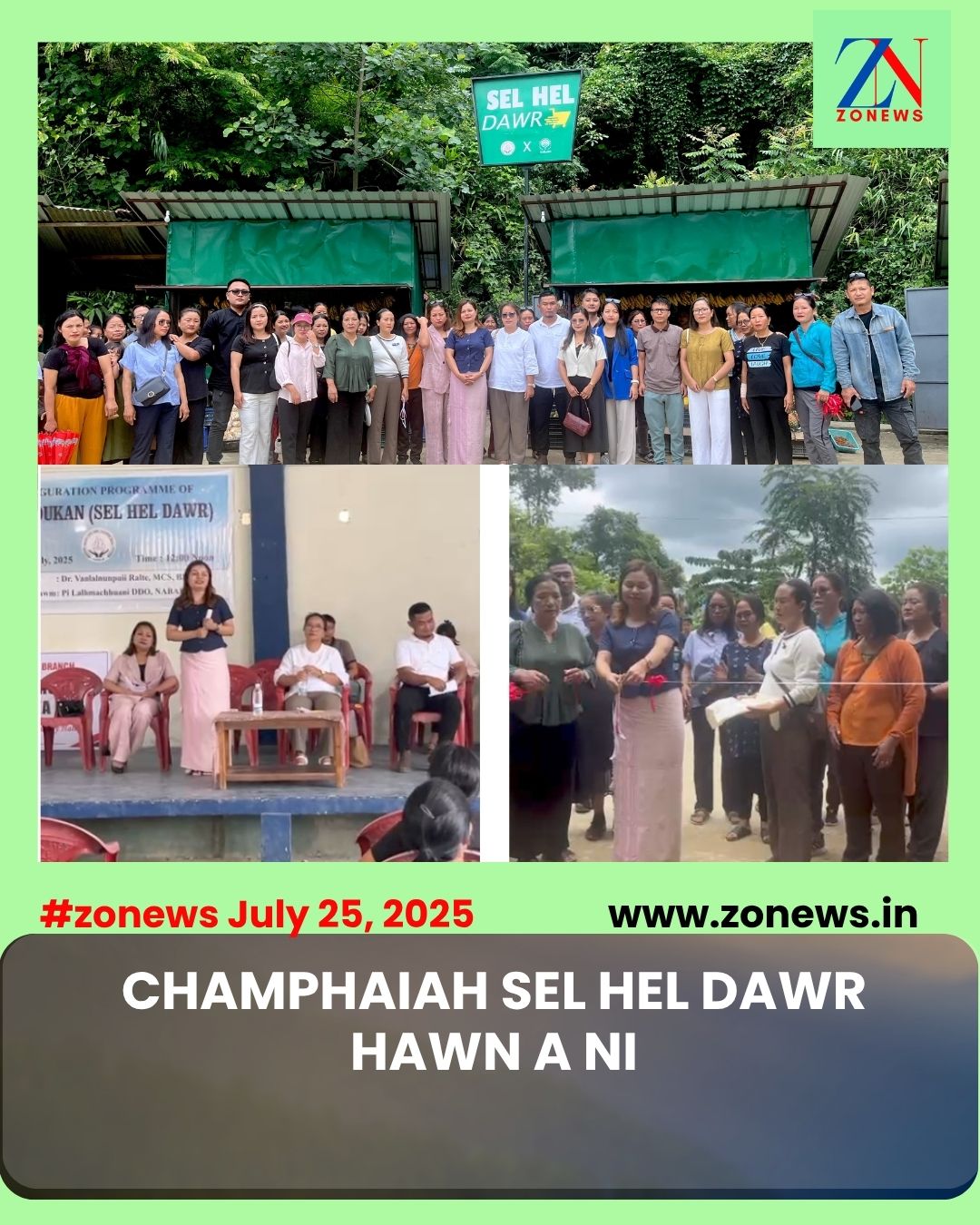 #ZONEWS Champhai July 25, 2025 Zirtawpni: Vawiin khan Champhai RD Block BDO Dr. Vanlalnunpuii Ralte chuan MzSRLM leh NABARD tang kawpa sak, GRAM DUKAN – SEL HEL Dawr, Mualkawi ami chu a hawng a, he hun hi Pi Lalremruati Khawlhring Block Mission Manager, Champhai RD Block chuan kaihruaiin PC Lalruatsanga Cluster Coordinator, Champhai RD Blcok chuan technical report a pe a ni.