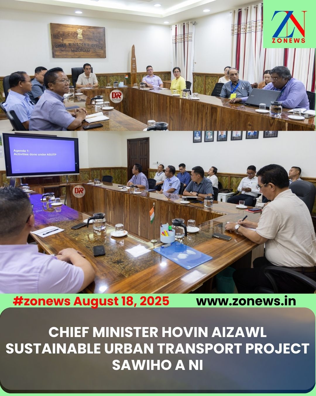 #ZONEWS Aizawl August 18, 2025: Vawiin khan Chief Minister Pu Lalduhoma hovin a office-ah Aizawl Sustainable Urban Transport Project (ASUTP), Project Readiness sawihona neih a ni a. UD & PA Minister Pu K. Sapdanga leh official pawimawhte an tel.