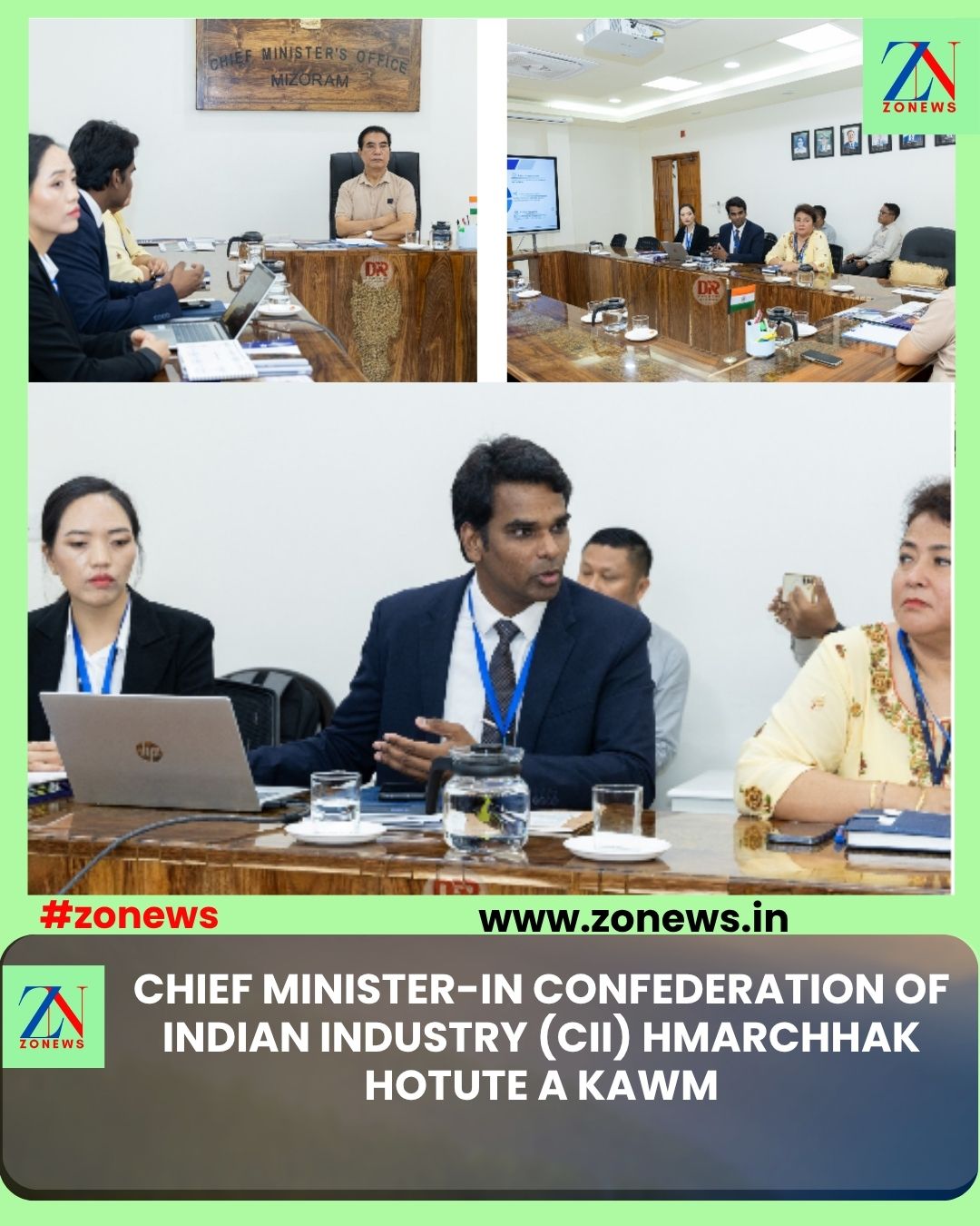 #ZONEWS July 18, 2025: Vawiin khan Chief Minister Pu Lalduhoma chuan a office-ah Confederation of Indian Industry (CII) Head, Centre of Excellence for Livelihood Pu Shivekgurubarran G, leh Ms Shalini Thapa, Senior Director and Head, Northeastern Region te a kawm a. Employment & Livelihood lama an hmalakna te a sawipui.