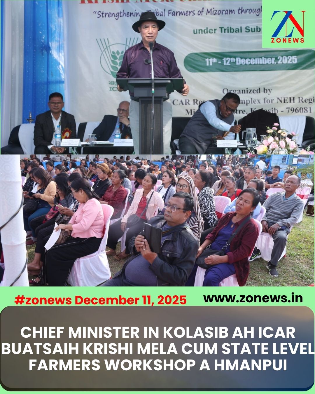 #ZONEWS Kolasib December 11, 2025: Vawiin khan “ICAR Research Complex for NEH Region, Mizoram Centre, Kolasib in December ni 11-12, 2025 chhung awh Tribal Sub Plan (TSP) hnuaia ‘Krishi Mela cum State Farmers Workshop’ hawnna inkhawm a buatsaih chu Pu Lalduhoma, Mizoram Chief Minister chuan a hmanpui.