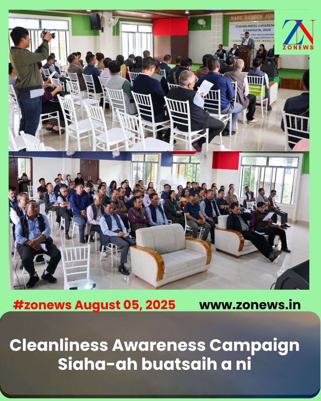 #ZONEWS Siaha August 05, 2025: MADC a Local Administration Department (LAD) buatsaihin vawiin khan MADC Golden Jubilee Hall, Siaha-ah Cleanliness Awareness Campaign buatsaih a ni a, Pu Joshua Chozah, Under Secretary LAD, MADC chuan he hun hi a kaihruai a ni.