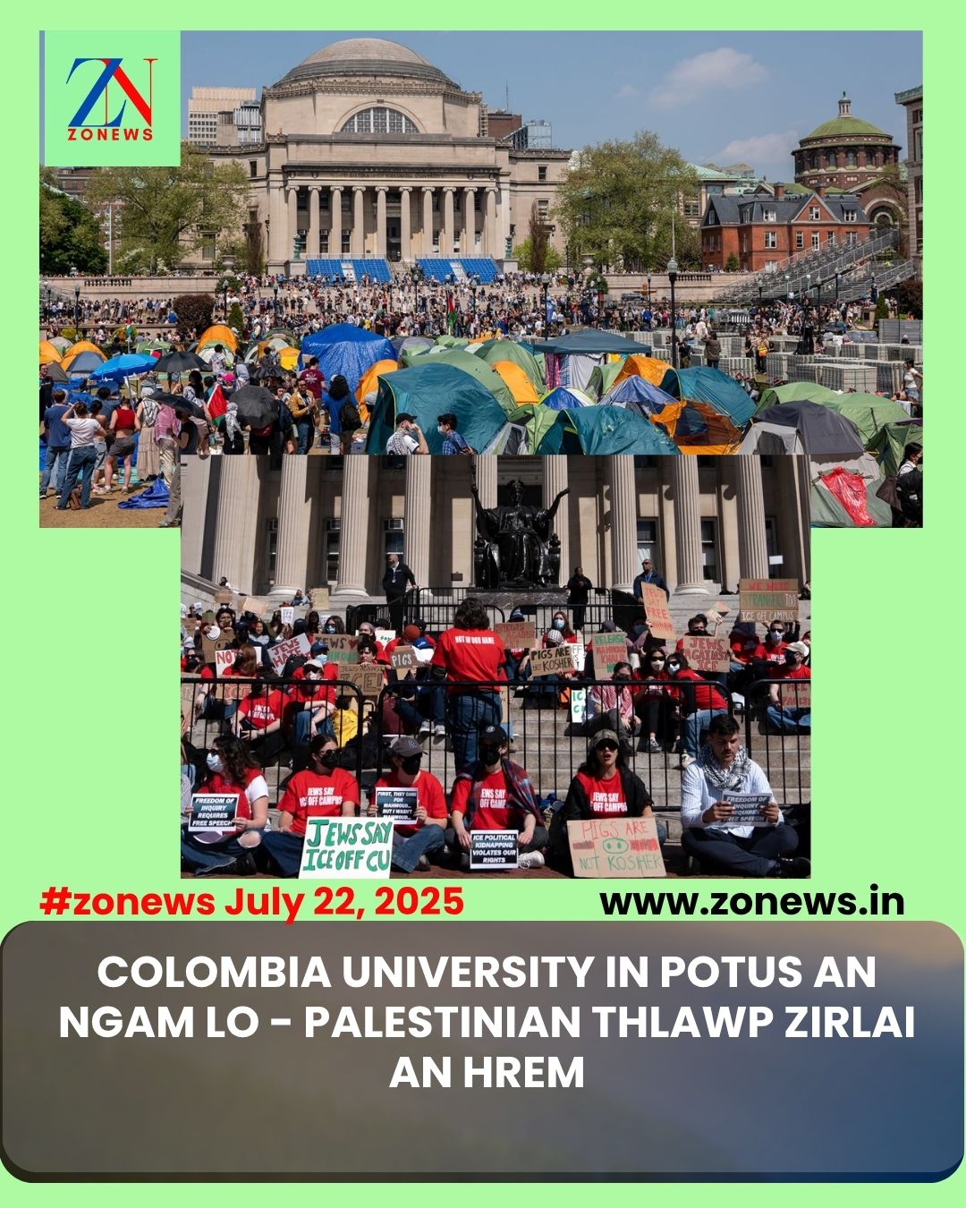 #ZONEWS July 23, 2025: New York City Columbia University chuan May thlaa library lak leh kum 2024 thlasik laia nawrh huaihawt camp neihna zirlaite