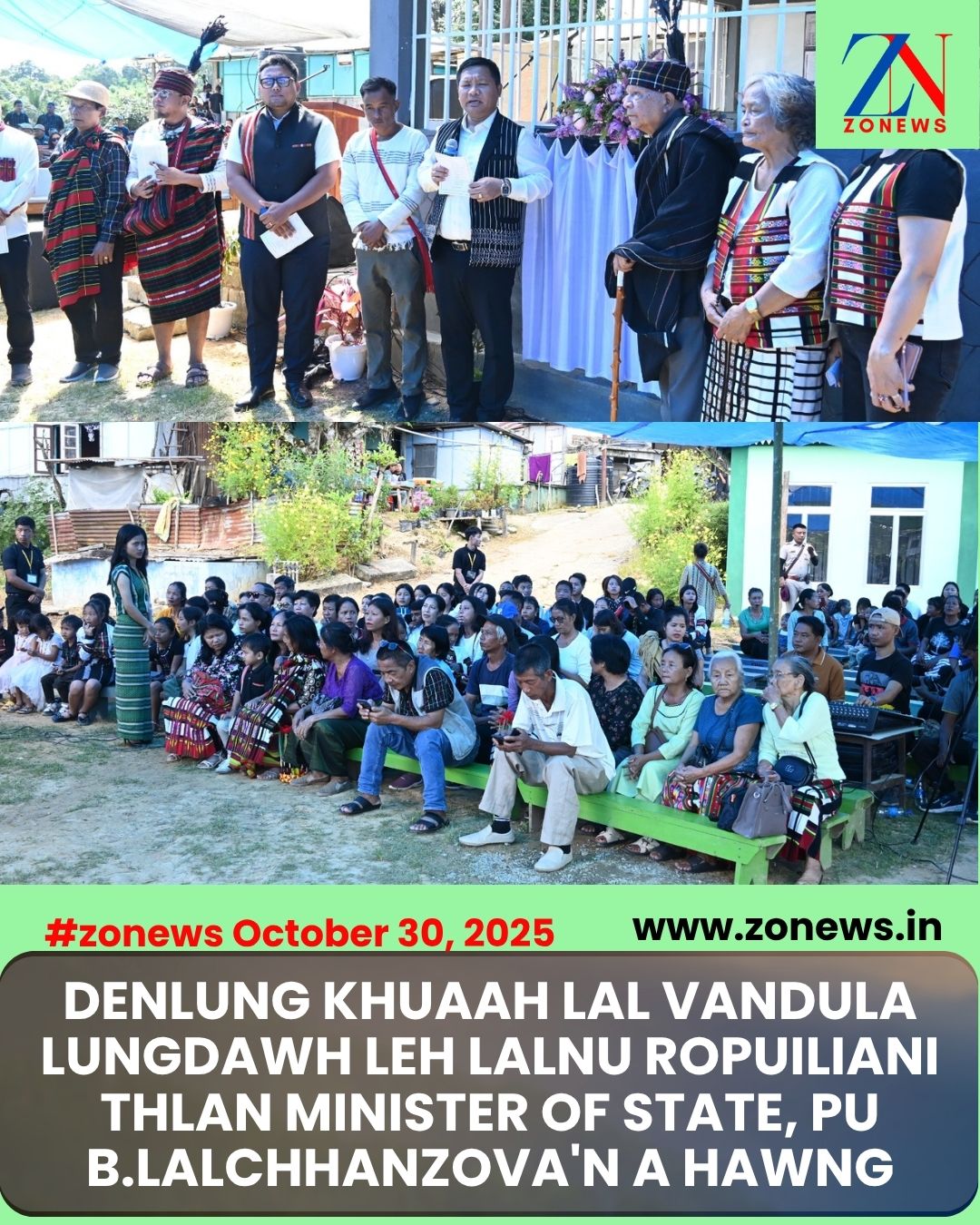 #ZONEWS Hnahthial October 30, 2025: Vawiin khan Denlung khuaah Minister of State, Pu B. Lalchhanzova chuan Lal Vandula leh Lalnu Ropuiliani Thlan hawngin tlawm ve lo Ropuiliani anga hnam dang laka tlawm ve lo tur chuan thangtharte chu thiamna lamah kan intuai hriam a tul takzet a ni a ti. South Tuipui Bialtu MLA, Pu Jeje Lalpekhlua chuan Khual Zahawm niin thusawina hun a hmang bawk a ni.