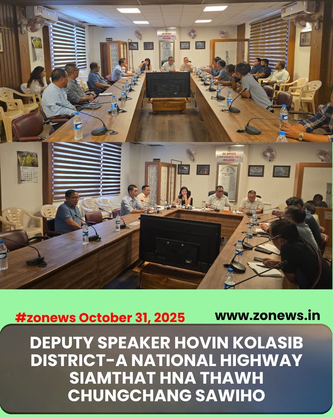 #ZONEWS Kolasib October 31, 2025: Vawiin khan Mizoram Legislative Assembly Dy. Speaker Pu Lalfamkima, Kolasib bialtu MLA ni bawk kaihhruaiin, Kolasib District paltlangtu National Highway (NH-306/06) siamthat hna thawh dan tur chungchangah NHIDCL hotute leh an hnuaia contractor-te nen meeting pawimawh neih a ni.