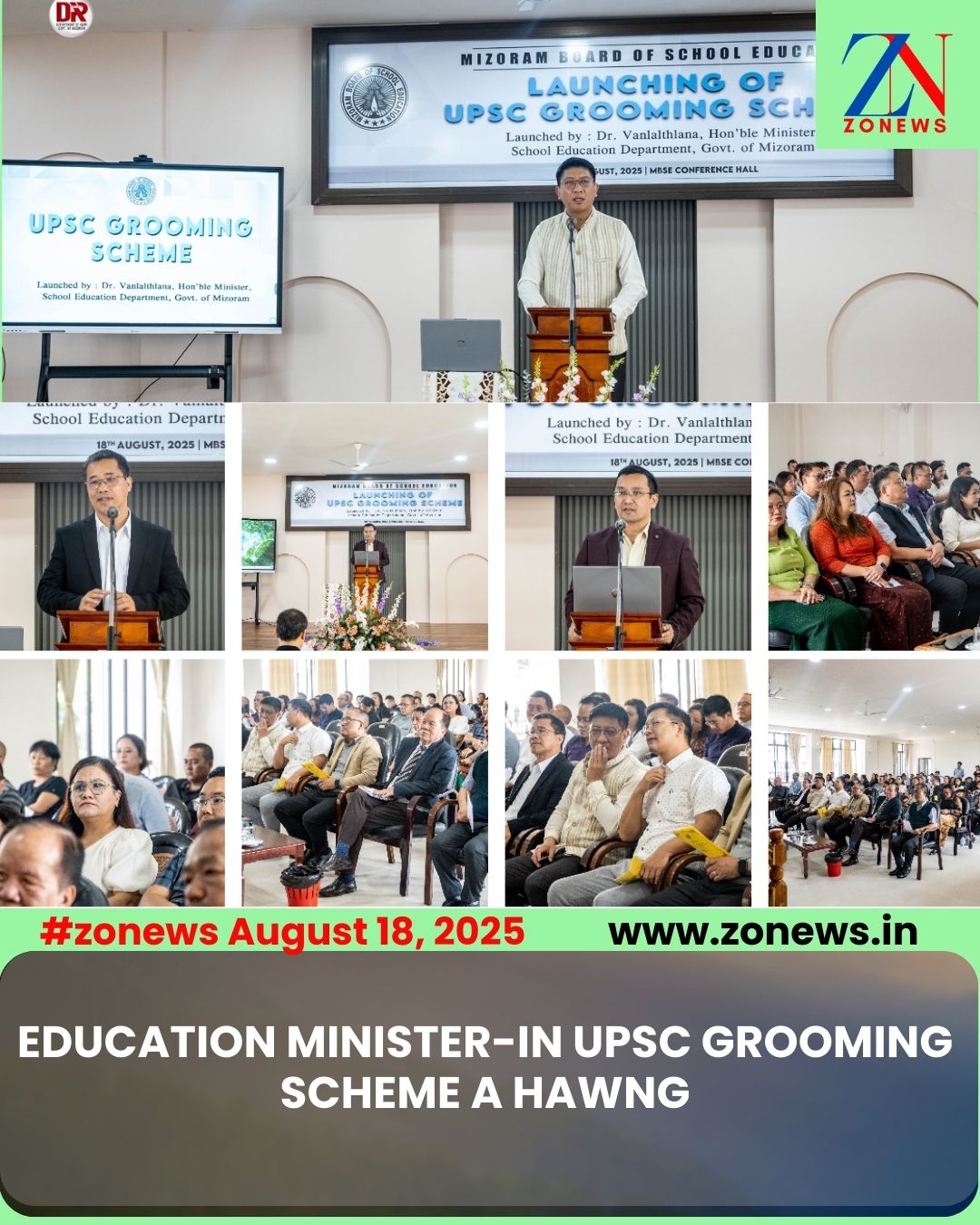 #ZONEWS Aizawl August 18, 2025 : Vawiin khan Mizoram Board of School Education buatsaih ‘UPSC Grooming Scheme’ chu MBSE Conference Hall-ah School Education Minister Dr. Vanlalthlana’n a tlangzarh. He hunah hian Adviser to Chief Minister (Handholding Policy) Dr. KC Malsawmzauva, Mizoram Youth Commission Chairman Pu Malsawmzuala Ralte bakah Mizoram Education Reforms Committee member te leh sawrkar hotu dangte an tel.