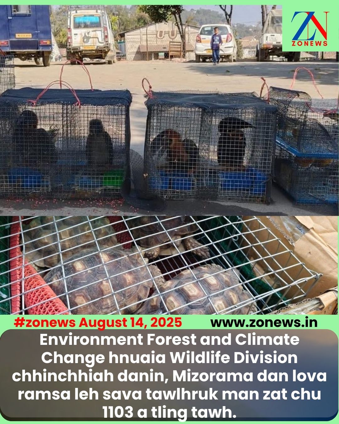 #ZONEWS August 14, 2025: Environment Forest and Climate Change hnuaia Wildlife Division chhinchhiah danin, Mizorama dan lova ramsa leh sava tawlhruk man zat chu 1103 a tling tawh.