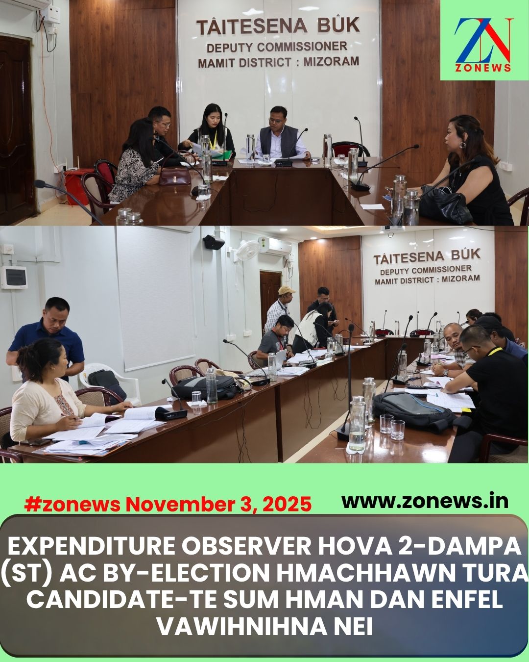 #ZONEWS Mamit November 3, 2025: Vawiin khan Taitesena Buk,DC Mamit-ah 2-Dampa (ST) AC By-Election Expenditure Observer Mr. Shyam Kumar, IDAS hovin Dampa bial By-Election atana candidates-te sum hman dan enfel vawihnihna neih a ni.