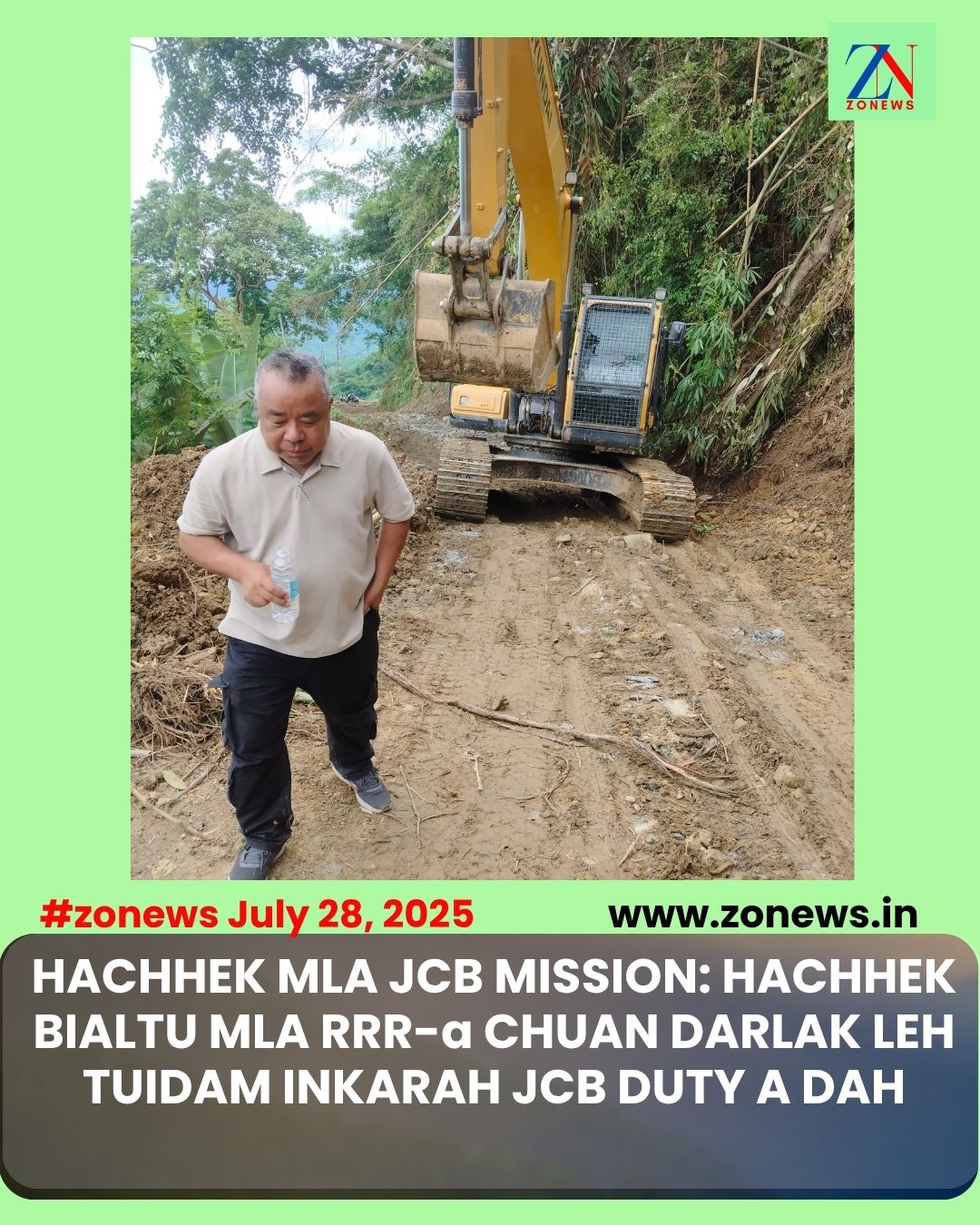 #ZONEWS July 28, 2025: Hachhek Bialtu MLA Pu Robert Romawia Royte chuan Darlak leh Tuidam inkar kawng chhia leh nalah Motor a tan nasat thin avangin Motor tangte Hnuk chhuak zung zung turin a hmunah JCB Duty a dah dawn ta!!