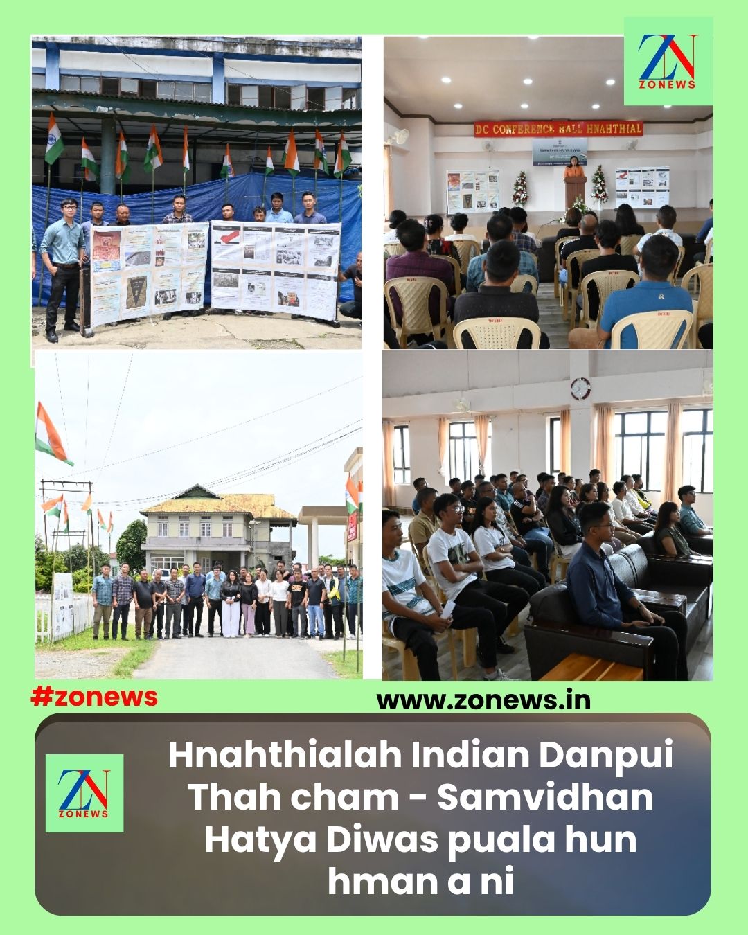 #ZONEWS July 15, 2025: Ministry of Culture ruahmanna hnuaia buatsaih, India Danpui thah cham – ‘Samvidhan Hatya Diwas’ pualin vawiin khan Hnahthial DC Conference Hall-ah hun hman a ni a. Bawrhsap, Pi K.Vanlalruati chuan he hun hman a nih chhan sawifiahin SDO Sadar, Pi Esther Leihang chuan programme hi a kaihruai a ni.