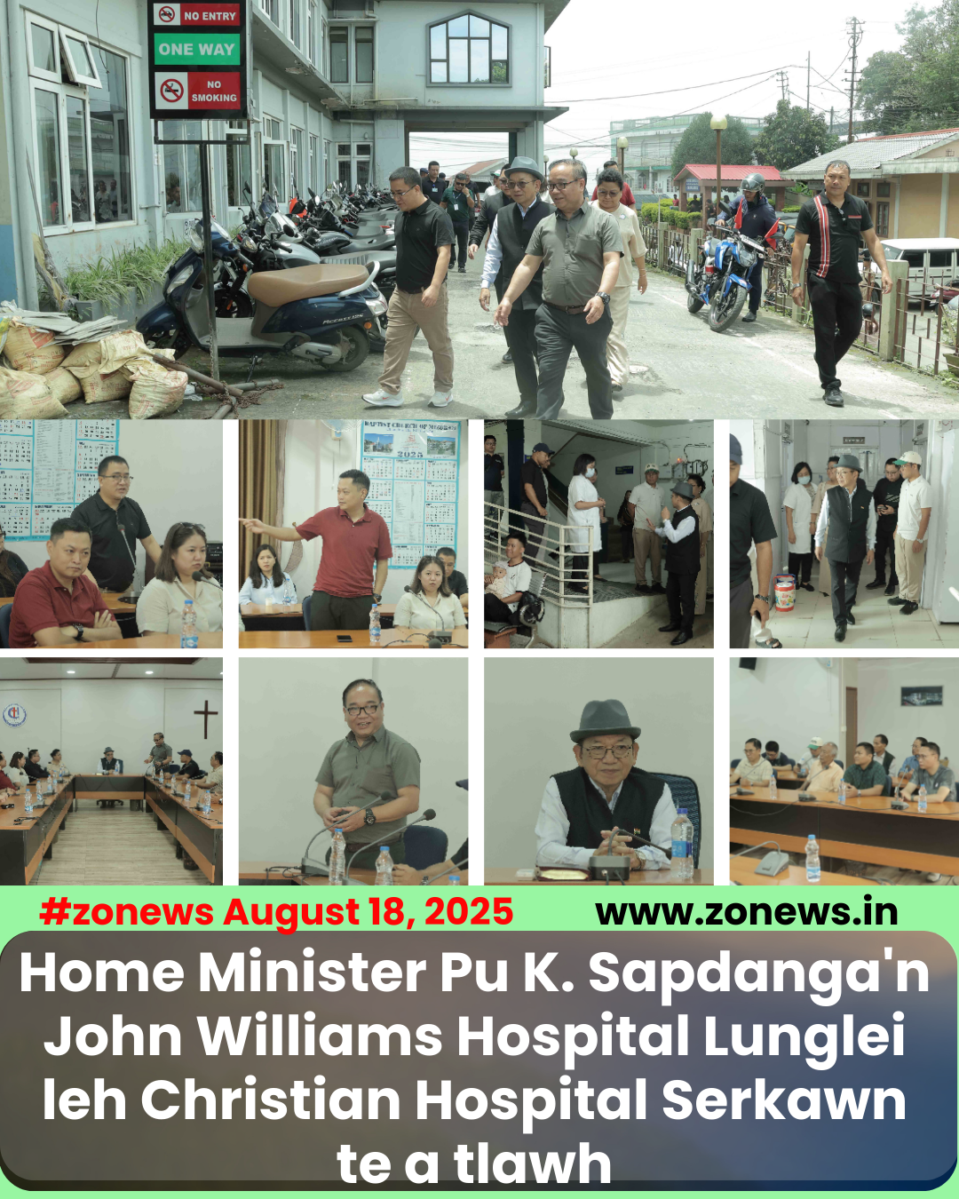 #ZONEWS Lunglei August 18, 2025: August 16, 2025 Inrinni kal ta khan Mizoram sawrkara Home, UD&PA leh DP&AR Minister Pu K. Sapdanga chuan Lungleia damdawi in pahnih – Mizoram Presbyterian Kohhran enkawl John Williams Hospital leh Mizoram Baptist Kohhran enkawl Christian Hospital Serkawn te a tlawh a, damdawi ina thawktute nen inkawm hona hun an hmang.