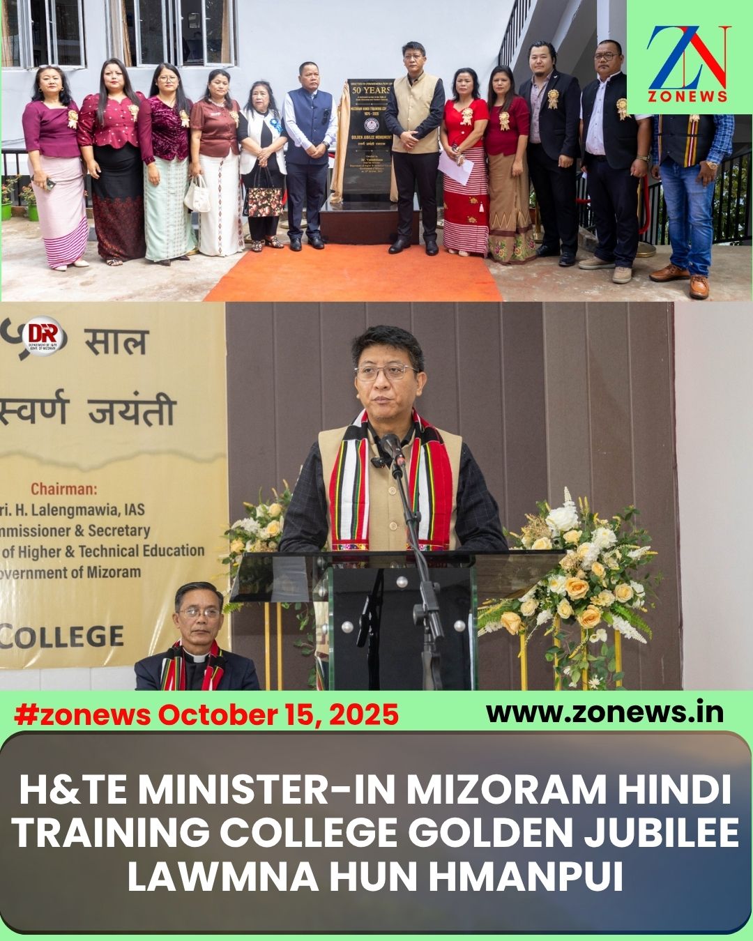 #ZONEWS Aizawl October 15, 2025: Vawiin khan Mizoram Hindi Training College (MHTC) chuan an kum 50 tlin lawmna hun, MHTC Auditorium, Durtlang North, Aizawl-ah an hmang a, Higher & Technical Education Department Minister Dr. Vanlalthlana chuan hun a hmanpui a, Hindi tawnga ziak lehkhabu 15,000 chuang awmna leh tunlai thiamna hmanga thuam, New Age Learning Centre and Fully Automated Library a hawng nghal a ni.
