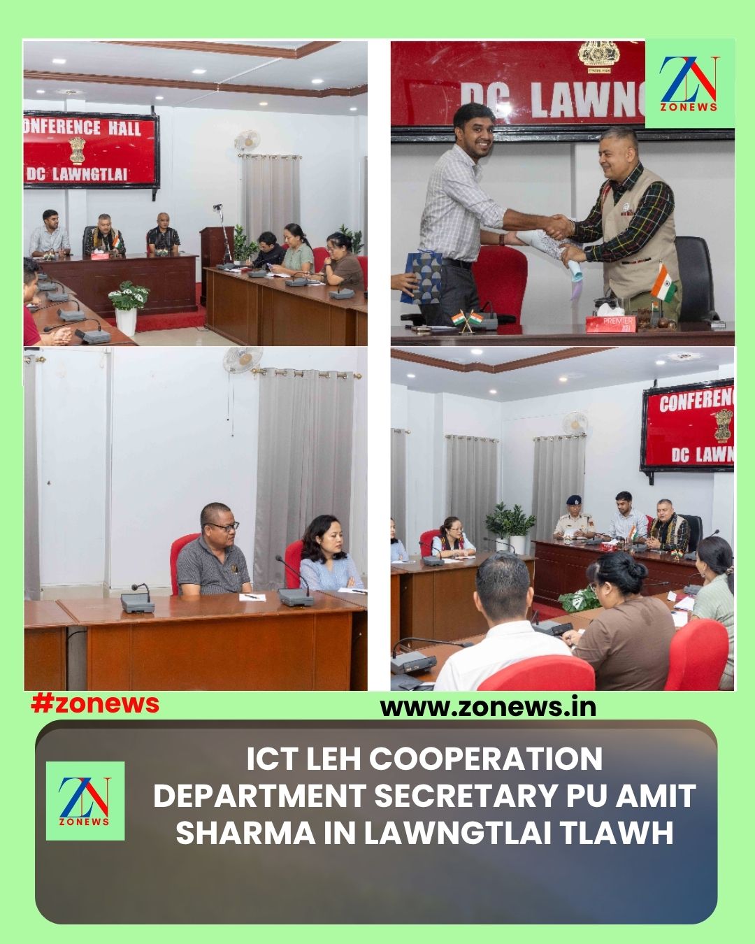 #ZONEWS July 16, 2025: Vawiin khan Pu Amit Sharma, IAS, Secretary, Information & Communication Technology leh Cooperation Department, Government of Mizoram, chuan Lawngtlai tlawhin sawrkar department- hotute nen DC Conference Hall- ah thutkhawm an nei a. Pu Cheemala Siva Gopal Reddy, IAS, Lawngtlai bawrhsap chuan thutkhawm hi a kaihruai.