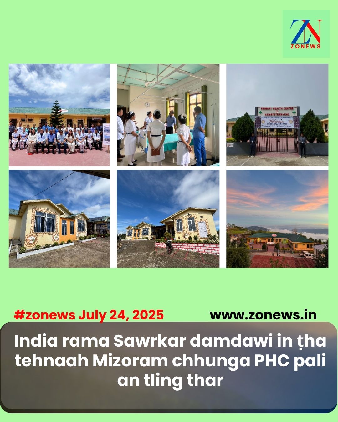 #ZONEWS July 24, 2025: India rama sawrkar damdawi in ṭha bik tehnaah Mizoram chhunga Primary Health Centre pali – South Vanlaiphai PHC, Sairang PHC, Bunghmun South PHC, leh Kawrtethawveng PHC te an tel thar.