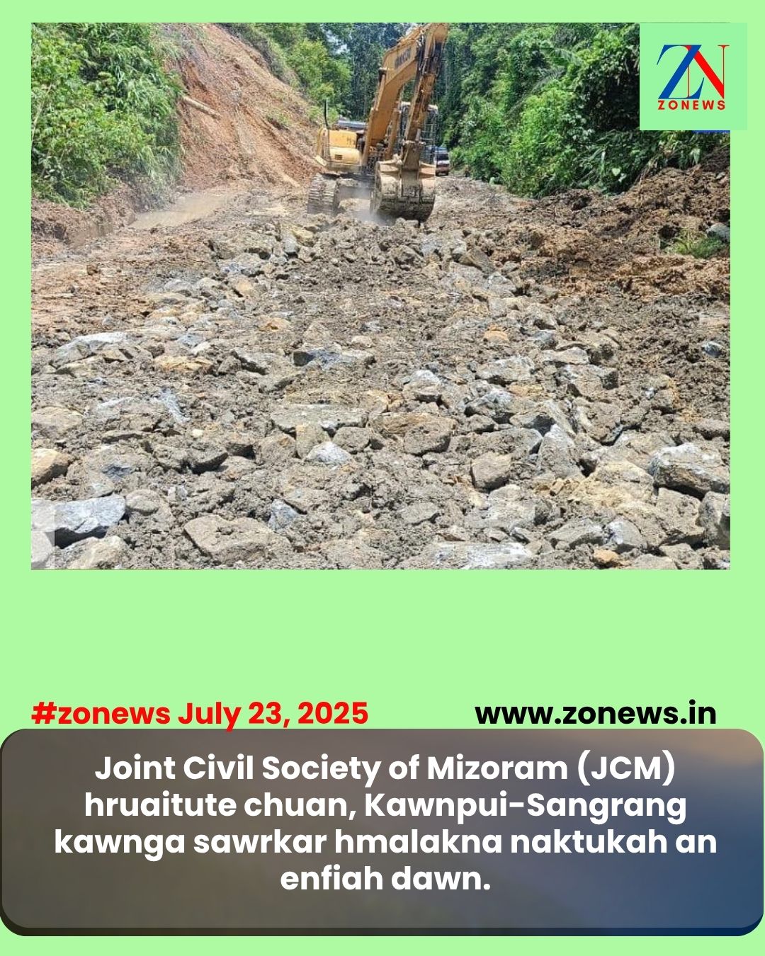 #ZONEWS July 23, 2025: Kawnpui leh Sairang inkar kawngchhia chungchanga thuneitute darkar 48 nghaktu Joint Civil Society of Mizoram (JCM) hruaitute chuan sorkarin chet a la ta a an hriat thu leh naktukah an enfiah dawn thu an sawi.