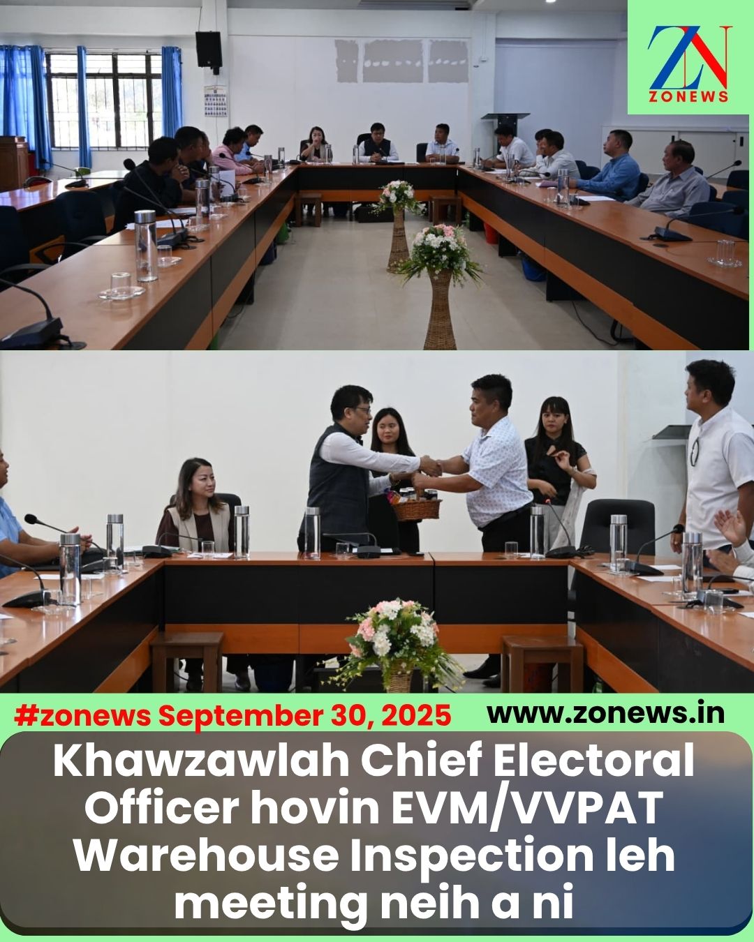 #ZONEWS Khawzawl September 30, 2025: Vawiin chawhma dar 11 khan DC Auditorium, Khawzawlah Chief Electoral Officer (CEO) Dr. Lalrozama chuan EVM/VVPAT Warehouse inspection a nei a, Khawzawl District sawrkar hotute nen meeting a nei bawk.