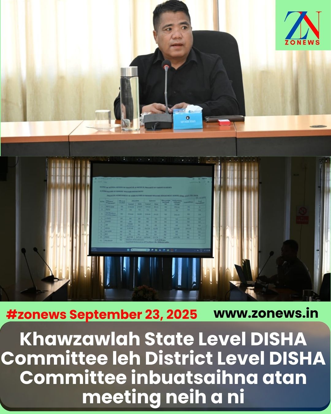 #ZONEWS Khawzawl September 23, 2025: Vawiin chawhma dar 10:30 am khan DC Auditorium Khawzawlah State Level DISHA Committee leh District Level DISHA Committee inbuatsaihna atan meeting neih a ni a, Bawrhsap Pu K. Vanlalthiana’n a kaihruai.