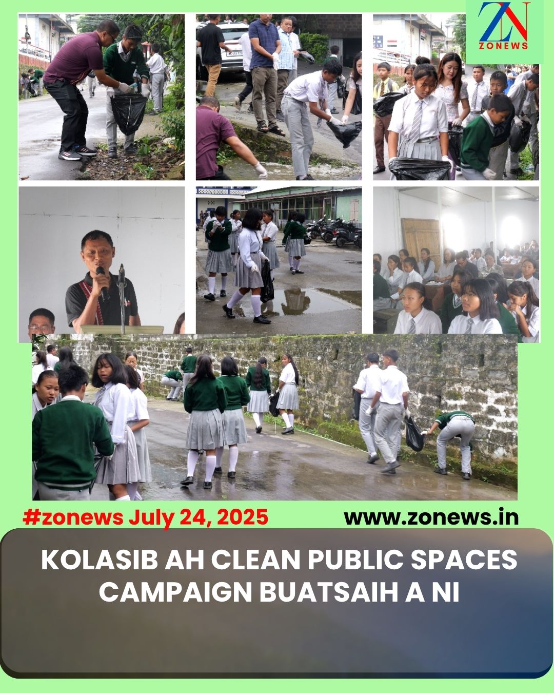 #ZONEWS Kolasib July 24, 2025: Vawiin khan Gov’t Diakkawn Middle School – II, Diakkawn, Kolasibah UD&PA, Kolasib District buatsaihin SABB Campaign kal zelah ”Clean Public Spaces Campaign’ buatsaih a ni a, He hunah hian Pu Robert C Lalhmangaiha, Deputy Commissioner, Kolasib District chu khuallian niin, Govt Diakkawn Middle School -II zirlaite leh zirtirtute, SHG aiawhte leh he hun hmang tura sawmbikte an tel a ni.