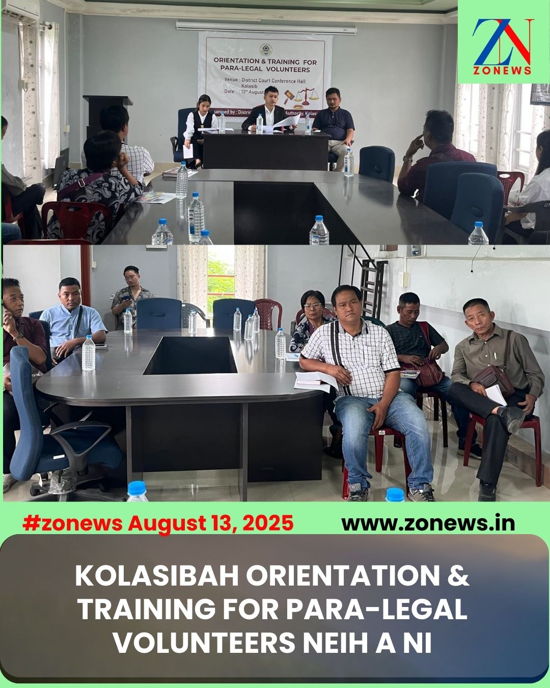 #ZONEWS Kolasib August 13, 2025 : Vawiin khan Kolasibah Orientation & Training for Para-Legal Volunteers chu Kolasib District Court Conference Hall-ah neih a ni a. He hun hi Pu V. Vanlalhriata, Secretary, DLSA, Kolasib chuan a kaihruai a ni.