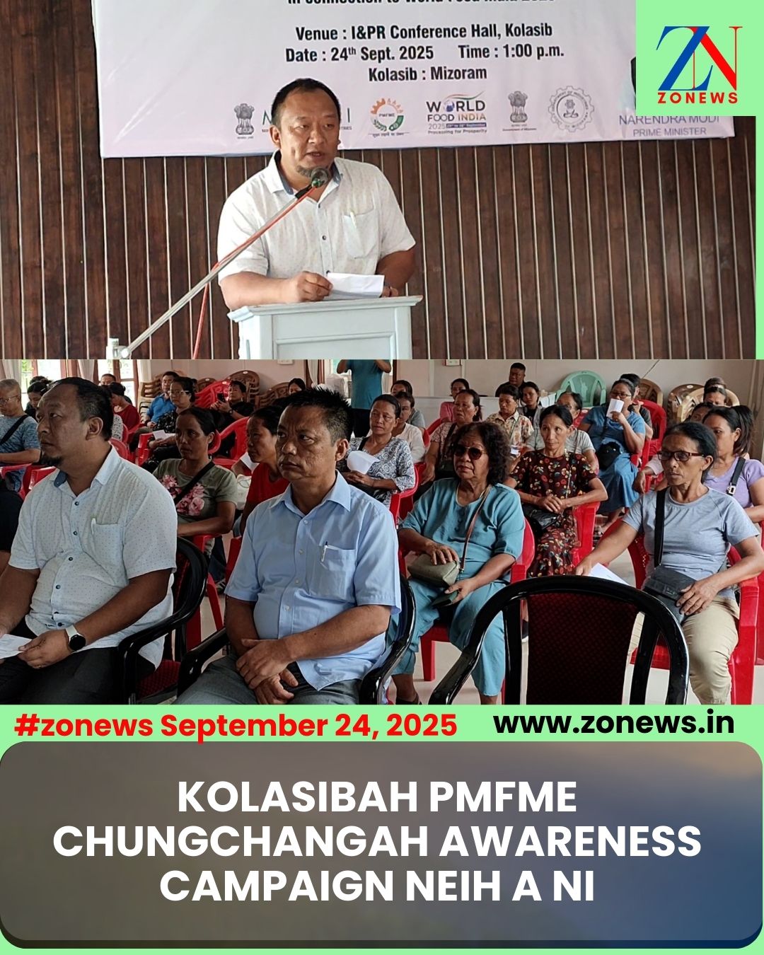 #ZONEWS Kolasib September 24, 2025: Vawiin khan I&PR Conference Hall Kolasibah Pradhan Mantri Formalization of Micro Food Processing Enterprise (PMFME) Awareness Campaign Pu C. Lalthangkima, District Commerce & Industries Officer Kolasib District hovin neih a ni.