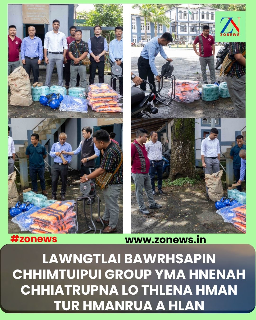 Chhimtuipui Group YMA hnenah hian Life jacket- 4, Silpaulin- 2, Safety helmet – 5, Hruizen lian- 3, Lenkhangpui- 1, leh Torchlight – 2 hlan an ni a. Hmanrua hlan tak te hi YMA, Kawlchaw West Branch ten Chhimtuipui Group YMA aiawhin an dawng a ni.