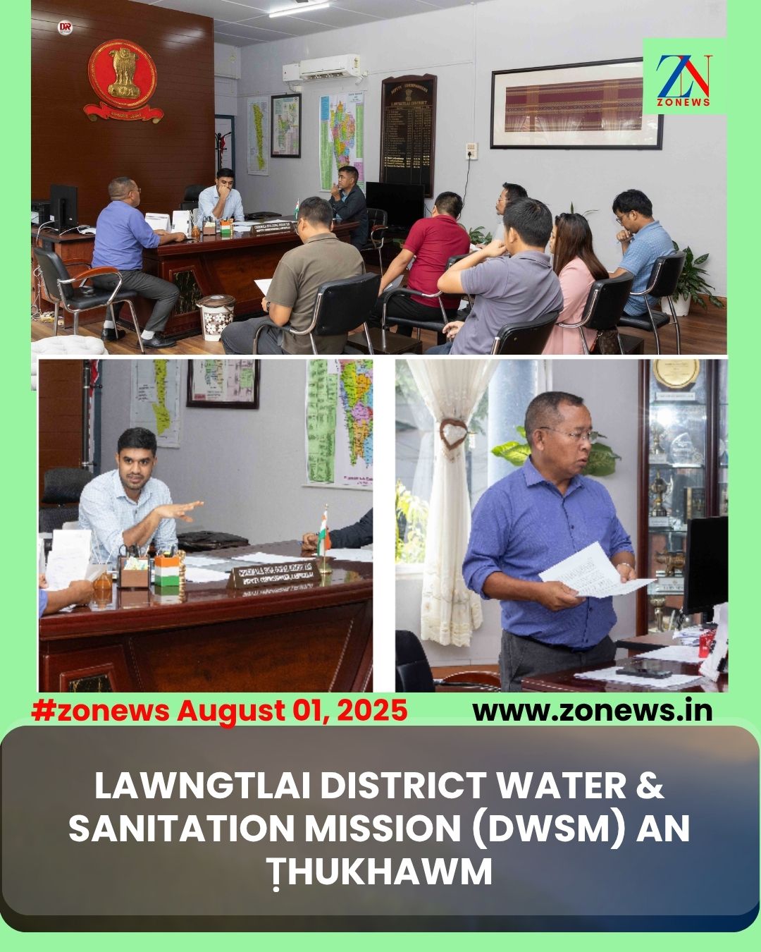 #ZONEWS Lawngtlai August 01, 2025: Vawiin khan Lawngtlai District Water & Sanitation Mission (DWSM) chuan DC Office Chamber-ah thutkhawm an nei a. Pu Cheemala Siva Gopal Reddy,IAS,  Lawngtlai Bawrhsap leh Chairman, District Water & Sanitation Mission, nibawk chuan a kaihruai.