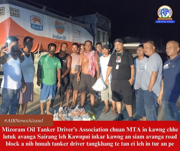 Mizoram Oil Tanker Driver’s Association chuan MTA in kawng chhe lutuk avanga Sairang leh Kawnpui inkar kawng an siam avanga road block a nih hnuah tanker driver tangkhang te tan ei leh in tur an pe.