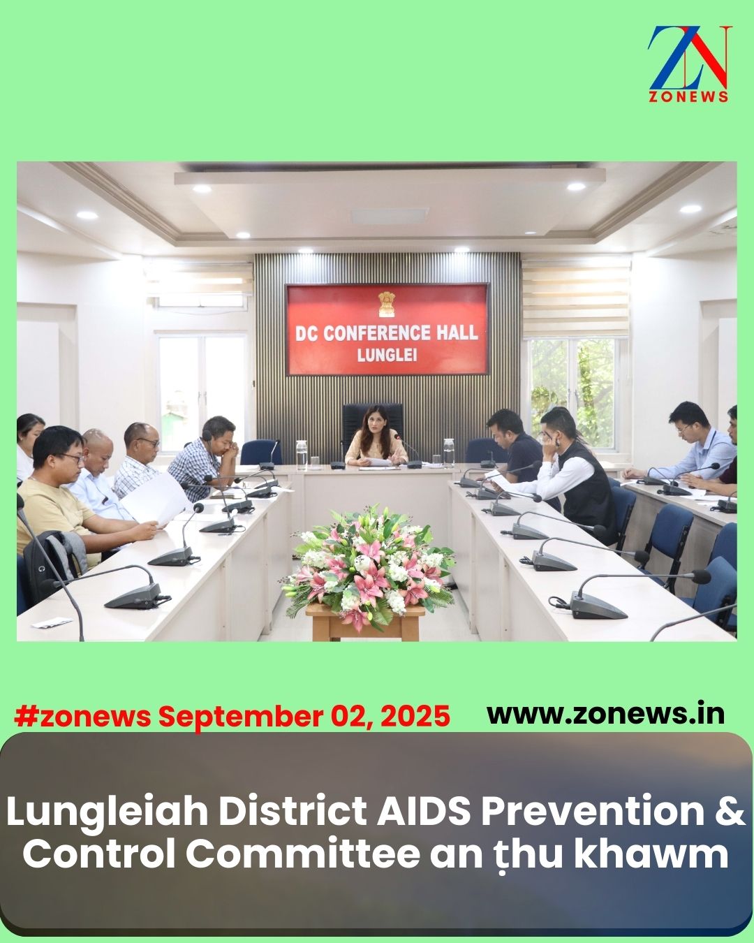 #ZONEWS Lunglei September 02, 2025: Vawiin khan Lunglei District AIDS Prevention & Control Committee (DAPCC) chu an Chairman, District Bawrhsap Pi Navneet Mann hovin Lunglei DC Conference Hall-ah an ṭhu khawm a. Lunglei District-a HIV chungchang inzirtirna leh thisen endik runpui, Intensified IEC Campaign cum HIV Test Drive Campaign kalpui dan tur an rel.