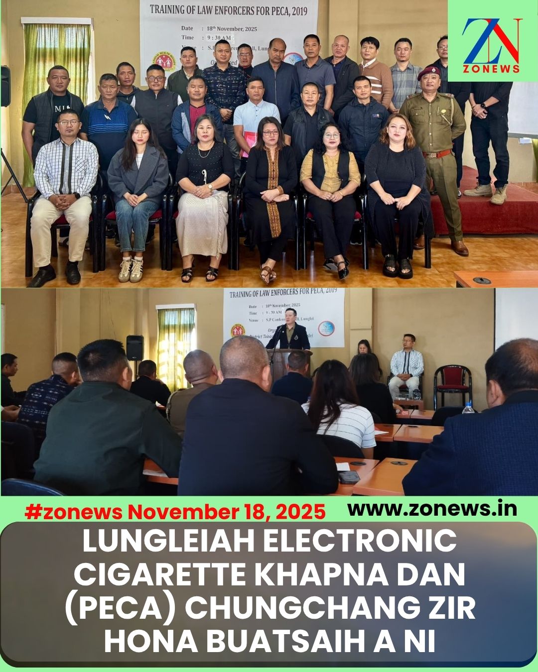 #ZONEWSLunglei November 18, 2025: Vawiin khan Lunglei SP Conference Hall-ah National Health Mission (NHM) leh National Tobacco Control Programme (NTCP), Lunglei District ṭang kawp huaihawtin electronic cigarette khapna dan, “Prohibition of Electronic Cigarettes Act, 2019” (PECA) zir hona buatsaih a ni.