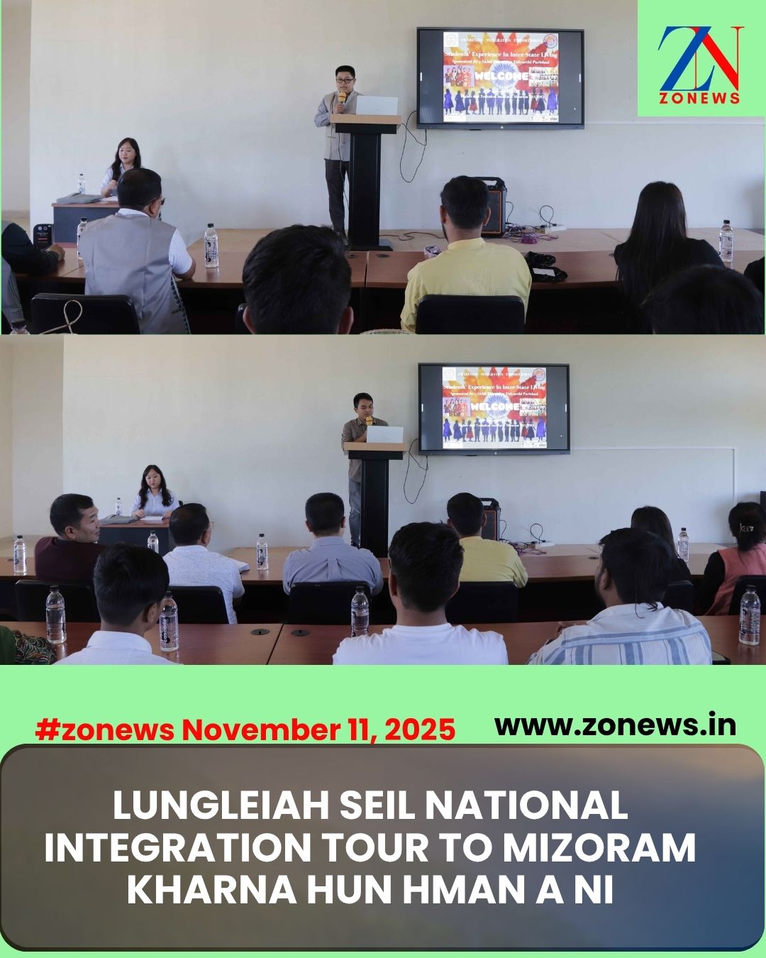 #ZONEWS Lunglei November 11, 2025: Vawiin chawhnu dar 2 khan HATIM Conference Hall, Kawmzawl, Pukpui, Lungleiah Students’ Experience in Inter-State Living (SEIL) National Integration Tour to Mizoram kharna hun, “Valedictory Programme” hman a ni a. Lunglei District Information & Public Relations Officer Pu C. Lalhruaitluanga chu khuallian niin, HATIM Principal Dr R. Lalnunthara chu khual zahawm a ni.