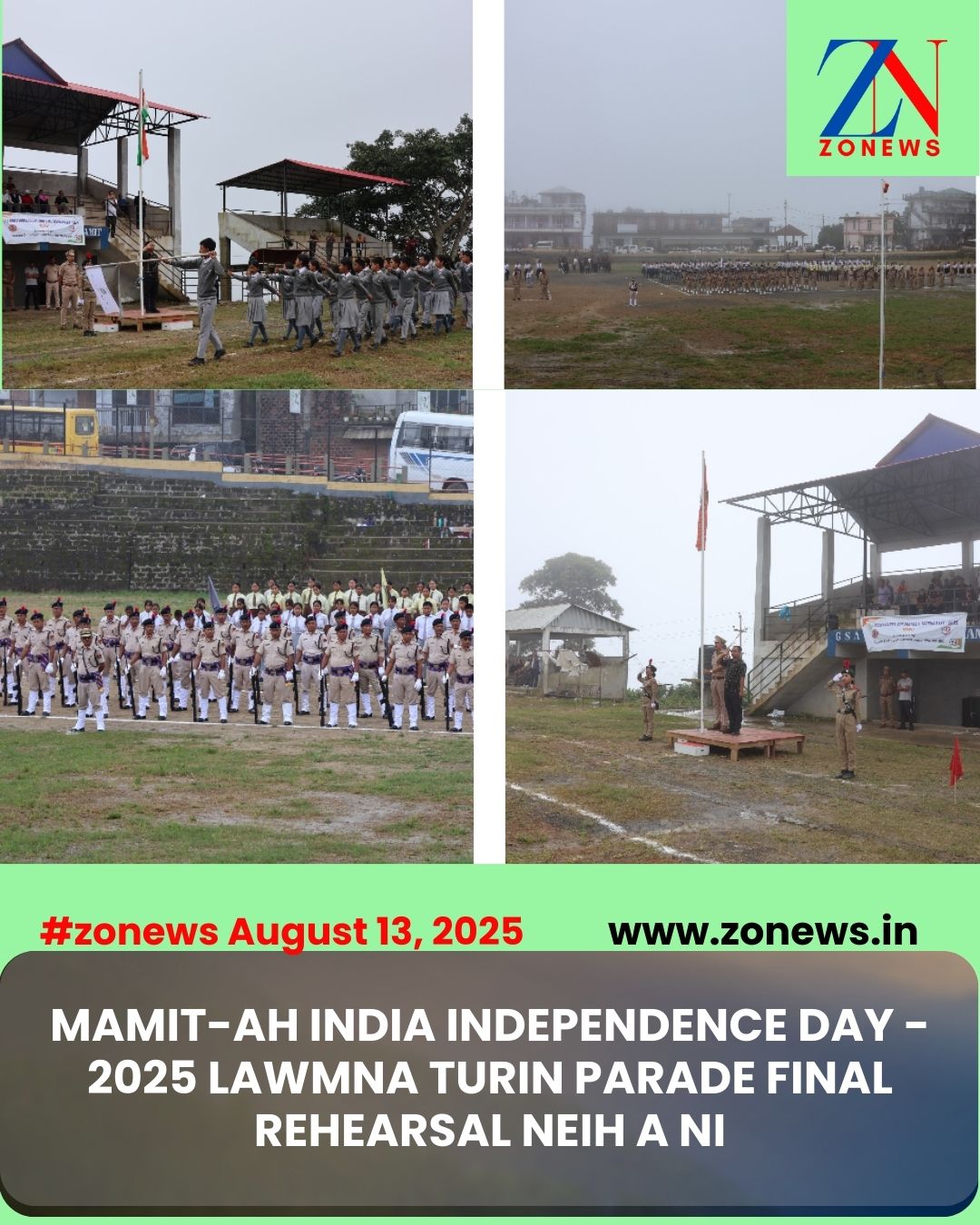 #ZONEWS Mamit August 13, 2025 : India Independence Day vawi 79 -na lawm turin Mamit-ah inbuatsaihna hrang hrang kalpui a ni a, tukin khan GSA Playground,Mamit-ah Parade contingents te’n Final Rehearsal an nei.