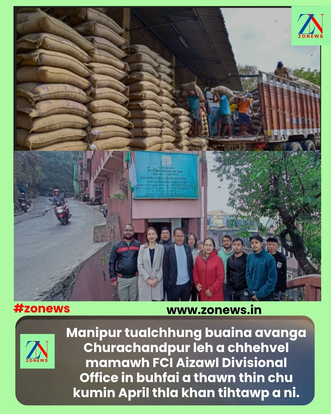Manipur tualchhung buaina avanga Churachandpur leh a chhehvel mamawh Food Corporation of India (FCI) Aizawl Divisional Office in buhfai a thawn thin chu kumin April thla khan tihtawp a ni.