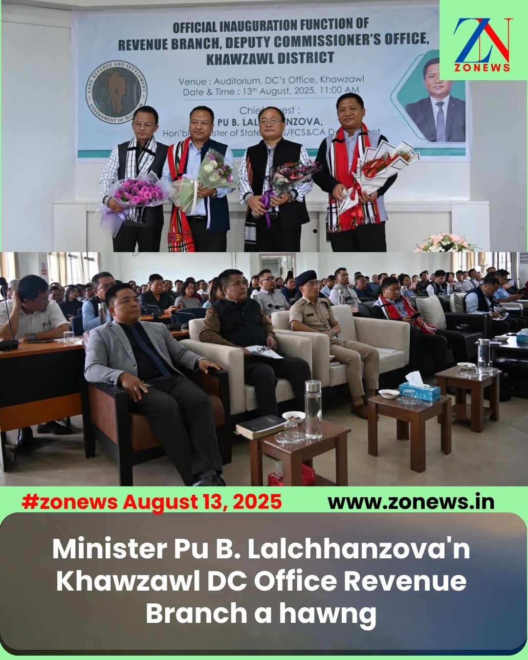 #ZONEWS Khawzawl August 13, 2025: Vawiin khan Land Revenue & Settlement Minister Pu B. Lalchhanzova chuan Deputy Commissioner’s Office hnuaia Revenue Branch a hawng.
