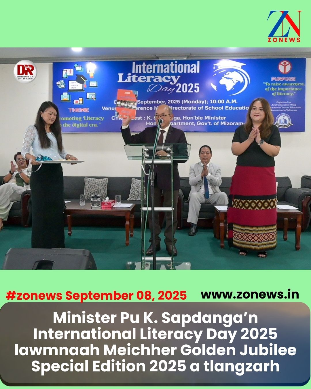 Minister Pu K. Sapdanga’n International Literacy Day 2025 lawmnaah Meichher Golden Jubilee Special Edition 2025 a tlangzarh