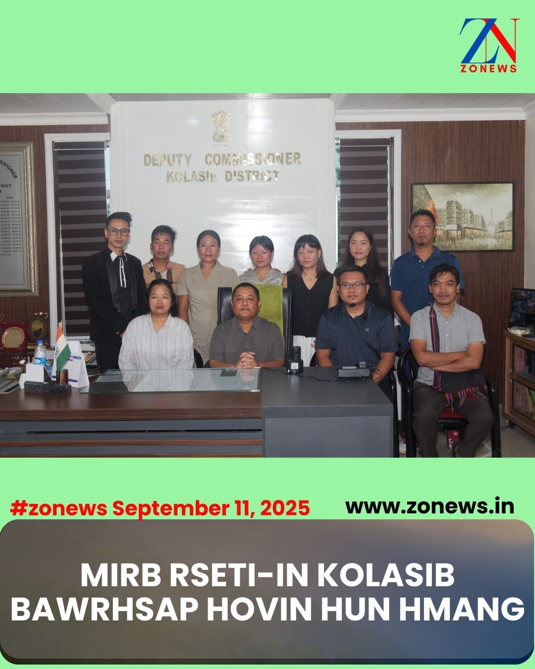 #ZONEWS Kolasib September 11, 2025 : Vawiin chawhma khan tunhnaia RSETI tana DST (Domain Skill Trainer) tling tharte pualin Kolasib Bawrhsap Pu Robert C. Lalhmangaiha chuan a Chamber-ah lawmpuina leh fuihna hun sawm bikte nen an hmang.