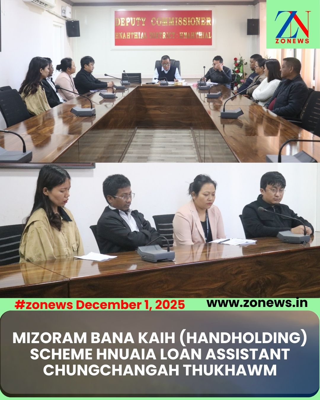 #ZONEWS Hnahthial December 1, 2025: Vawiin khan DC Meeting Hall, Hnahthial-ah Addl. DC Pu Zothanmawia Khiangte kaihhruaiin ‘Mizoram Bana Kaih’ (Handholding) scheme hnuaia Loan Assistant, Hnahthial District chhunga pek tur chungchangah meeting neih a ni. Meeting-ah hian line department bakah bank hotute an tel a ni.