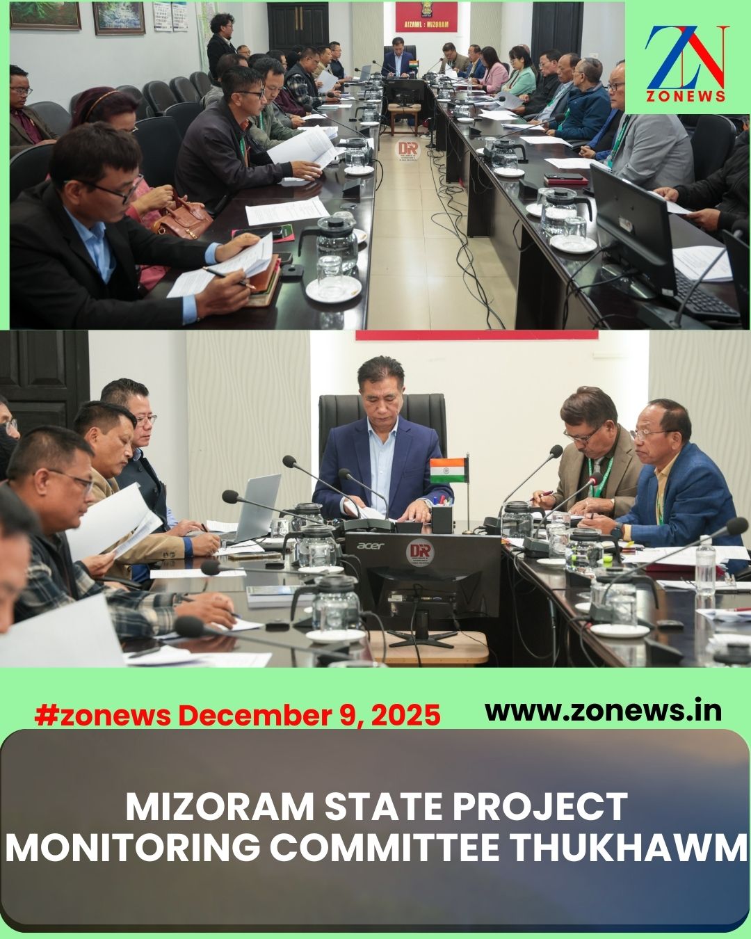 #ZONEWS Aizawl December 9, 2025: Vawiin khan Chief Minister Pu Lalduhoma kaihhruaiin Mizoram State Project Monitoring Committee te chu CM Conference Hall-ah an thukhawm a. Kumin chhunga Project an endik 40 te report an thlirho. Hei hi MSPMC General Body Meeting vawi 7-na a ni.
