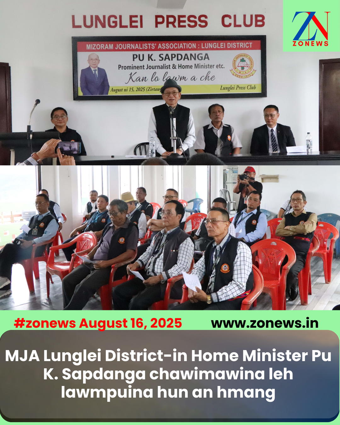 #ZONEWS Lunglei August 16, 2025: Vawiin khan Mizoram Journalists’ Association (MJA) Lunglei District chuan Lunglei Press Club Conference Hall-ah MJA General Headquarters President hlui leh Prominent Journalist, Mizoram sawrkara Home Minister Pu K. Sapdanga chawimawina leh lawmpuina hun an buatsaih.