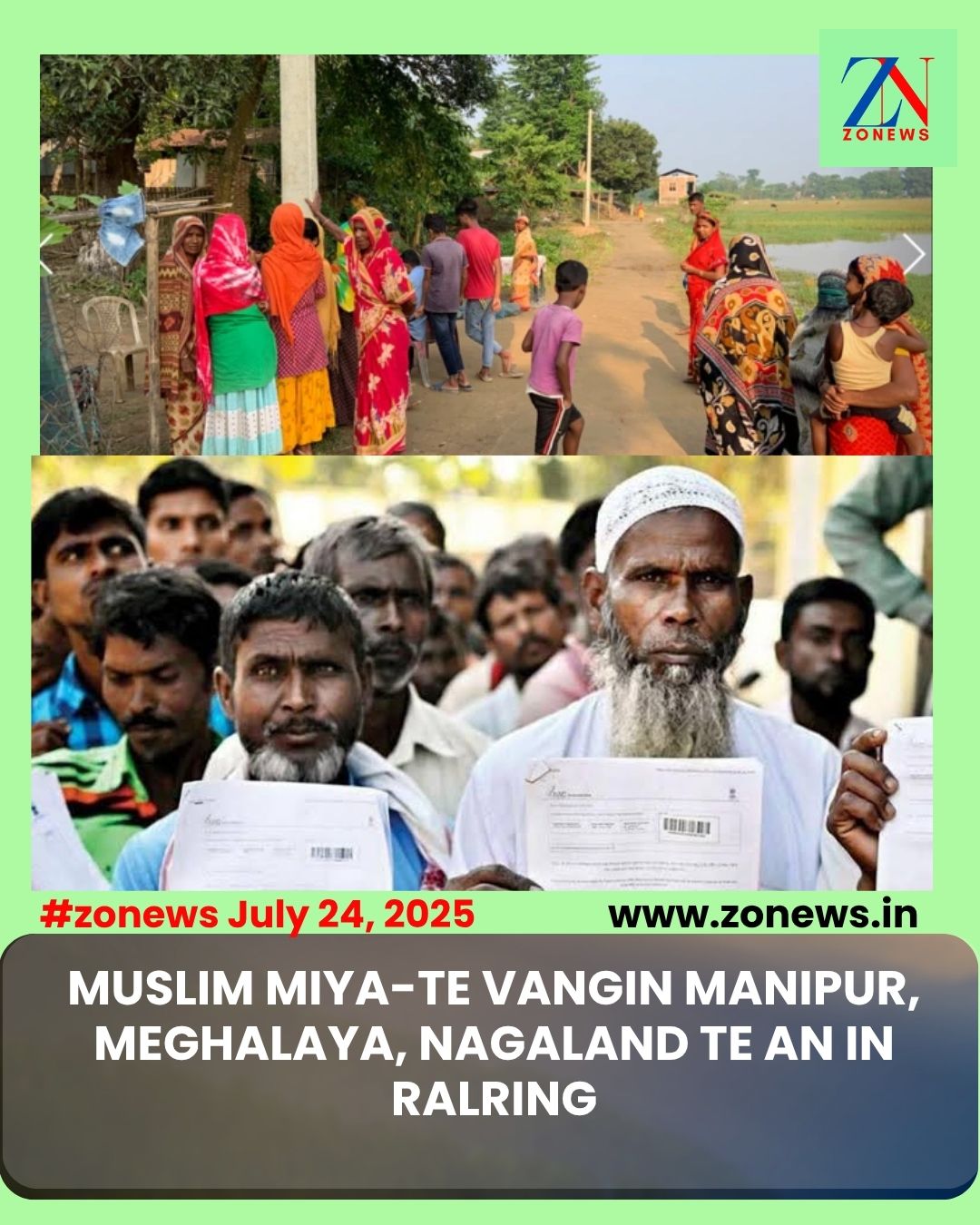 #ZONEWS July 24, 2025: Assam state Goalpara leh state chhung hmun hran hran a,Ilegal muslim ho um chhuah beih pui Assam state sawrkar in a kalpui avangin,Mizoram thenawm state Manipur, Meghalaya ,Nagaland etc te an in ralring nasa hle!!