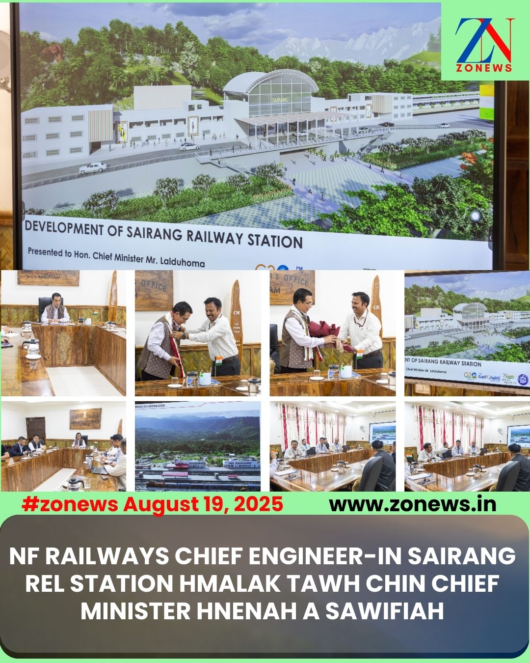 #ZONEWS Aizawl August 19, 2025: Vawiin khan Pu Vinod Kumar, Chief Engineer (Construction), Northeast Frontier Railways chuan Chief Minister Pu Lalduhoma hnenah Sairang rel station sak hna an thlen tawh chin sawifiahna a nei.
